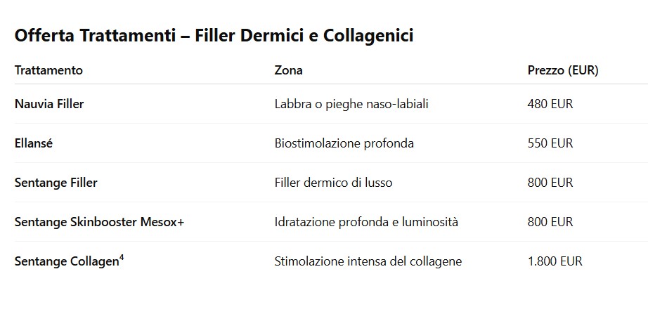 Trattamenti effettuati da medici estetici certificati, con prodotti di alta qualità (es. Vistabel®, Azzalure®, Sentange SPB®, Sentange Essence®)